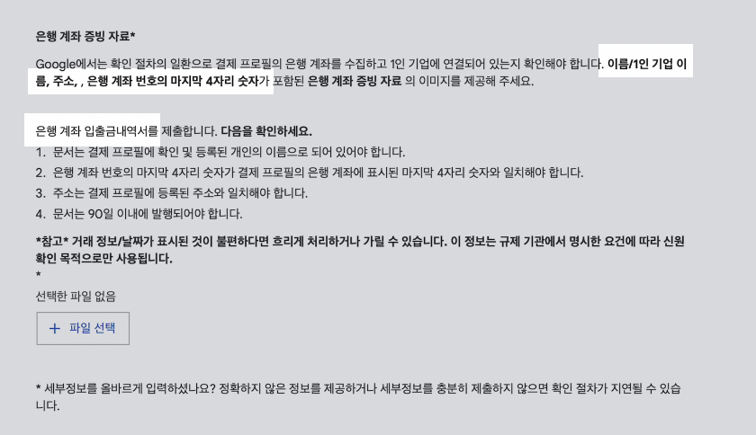 제출하는 파일에 포함되어야하는 내용에 이름, 주소, 은행 계좌 번호의 마지막 4자리 숫자가 있습니다.