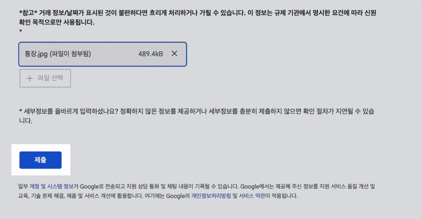 이렇게 입력과 업로드한 후 제출 버튼을 누릅니다.