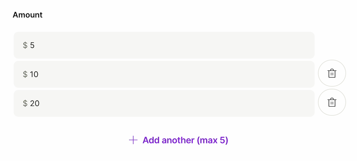 후원을 받을 금액을 몇 가지 선택할 수 있도록 제공할 수 있습니다.