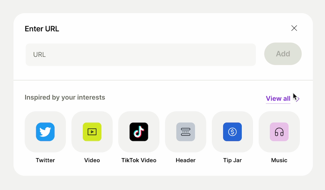 링크를 입력하는 창에서 오른쪽 중간쯤에 있는 Inspired by your interests의 View all을 누릅니다.